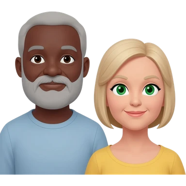 Older couple Black man greybeard and white woman with green eyes and blonde hair emoji
