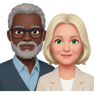 Older couple Black man grey beard and glasses white woman with green eyes and blonde hair emoji