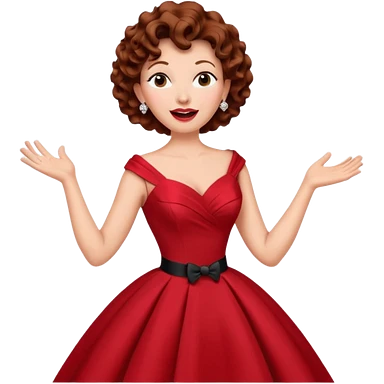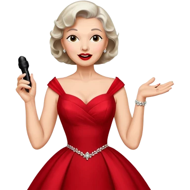 Older woman – elegant gown, 50s, diva, red dress, singing into mic emoji | AI Emoji Generator