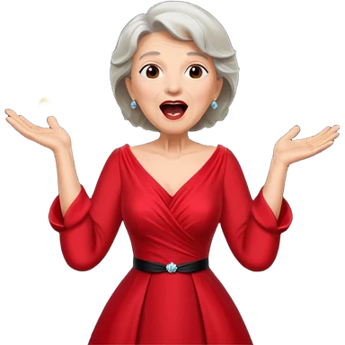 Older woman – elegant gown, 50s, diva, red dress, expressive singing pose emoji