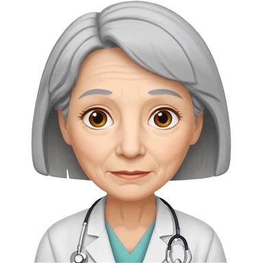 Older woman, shoulder length gray hair marbled blue rectangular glasses emoji