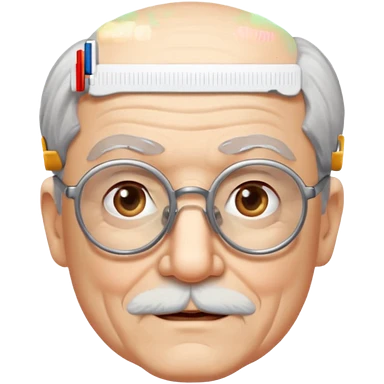 a grey oldman with moustache pointing on the screen with his finger and his eyes glow yellow light very bright emoji