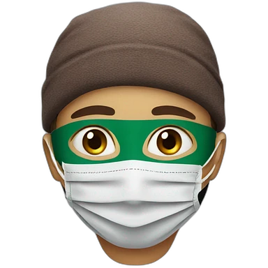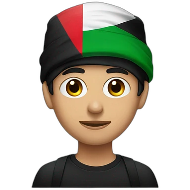 young man wearing a black hat and black mask, headband with Palestinian flag emoji