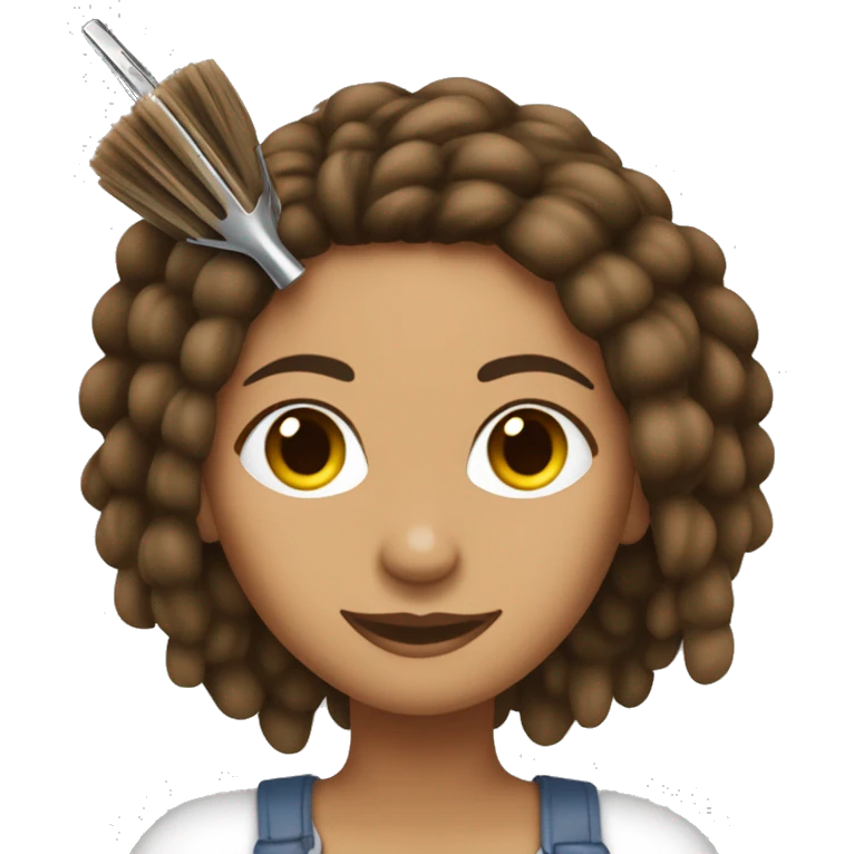 Olive skin tone female with brown dreadlocks wearing pick and holding dog grooming tools emoji | AI Emoji Generator