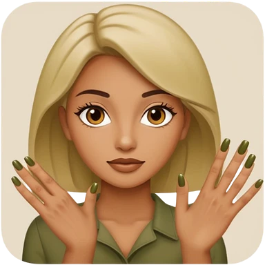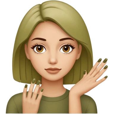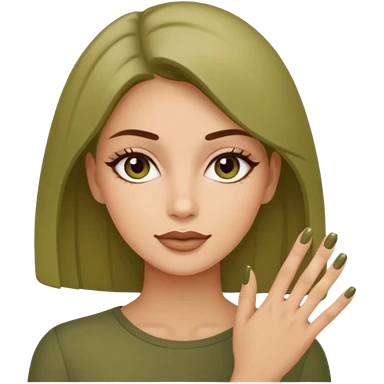 gel polish, y manicure en beige and olive green with a woman emoji