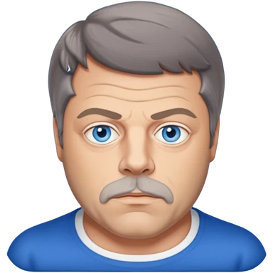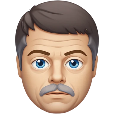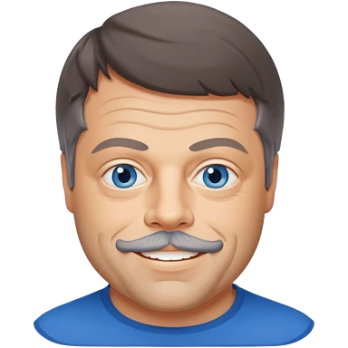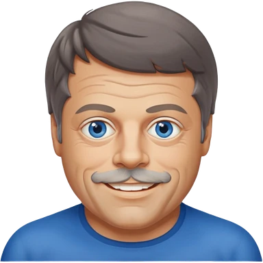Oliver Riedel, apple style emoji, bald, mustache and goatee, serious face, black t-shirt emoji