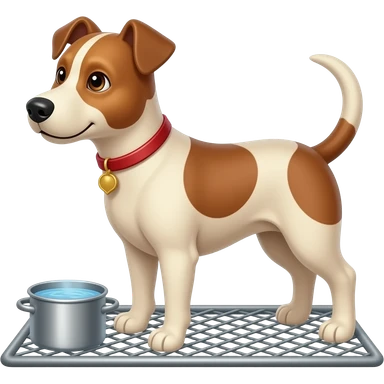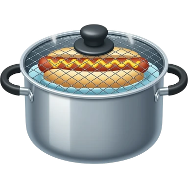 calentar el pan para perro caliente (comida) en un olla con agua caliente, y encima con una malla el perro calentandose con el vapor emoji