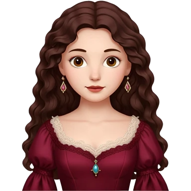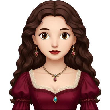 Renaissance lady – long dark brown wavy hair, burgundy gown with lace neckline emoji
