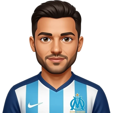 un personnage qui est blanc de peau qui sourie il a les cheveux nour dans le côté et il porte un maillot de l'om emoji