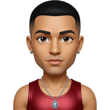 Raz-B from B2K with dark brown eyes, black caesar cut hair, deep red metallic tank top, necklace and earrings emoji