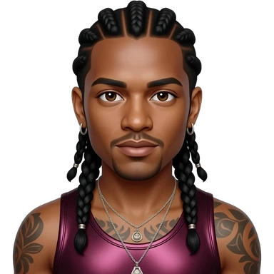 Omarion from B2K with dark brown eyes, long black braids, dark red metallic tank top, necklace and earrings emoji