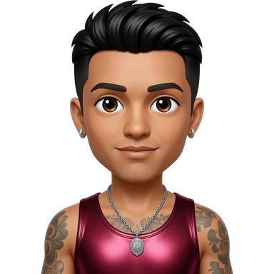 Lil Fizz from B2K with dark brown eyes, black hair, deep red metallic tank top, necklace and earrings emoji
