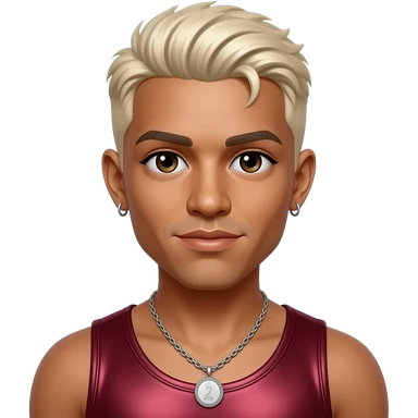 Raz-B from B2K with dark brown eyes, platinum blonde caesar cut hair, deep red metallic tank top, necklace and earrings emoji