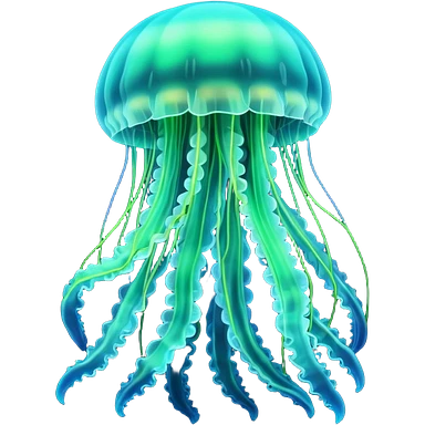 A softly glowing jellyfish (🌊🪼) drifting peacefully in the ocean depths, its tentacles gently trailing behind, symbolizing serenity, mystery, and the beauty of underwater life. emoji