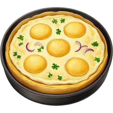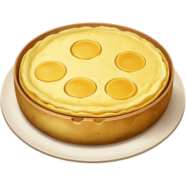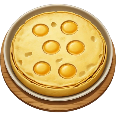Round spanish potato omelet no plate, plain ok top no toppings nor yolks emoji