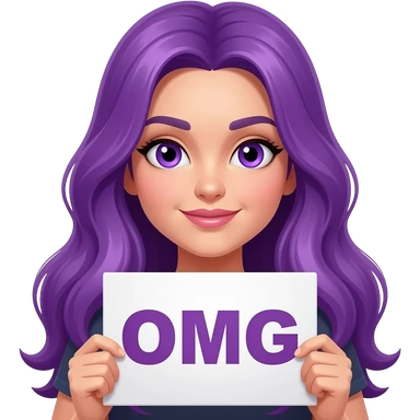 sexy girl with long purple hair and purple eyes holding a OMG sign emoji