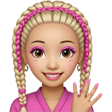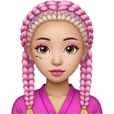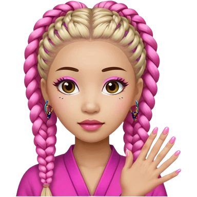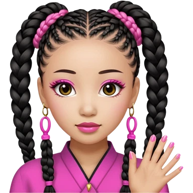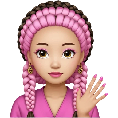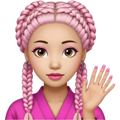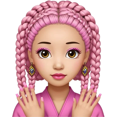 Une chinoise en Corée-du-Sud avec des faux ongles roses et des faux cils et des tresses africaines emoji