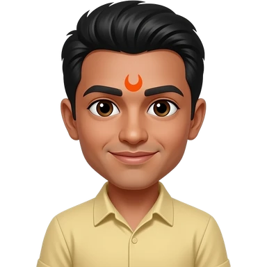 On forehead a U shape orange tikka and a small round red colour dot between the u emoji