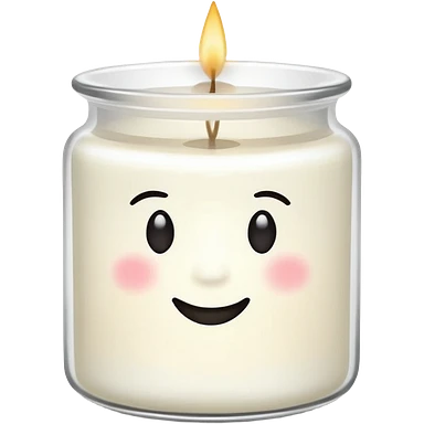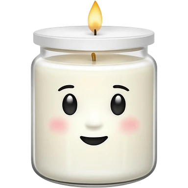 minimal flat emoji of a white scented candle in a glossy white glass jar with the label “cotton”, soft warm glow, clean vector style, elegant and modern, transparent background lux style emoji