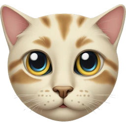 Grey tuxedo cat with one purple eye and one yellow eye emoji