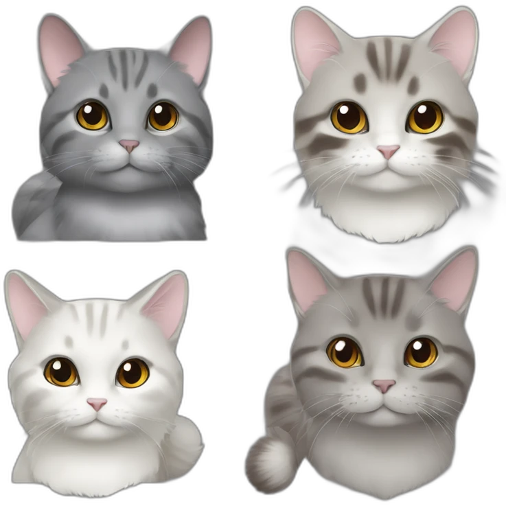 one cat Chinchilla full brown long hair with one cat gray short hair emoji | AI Emoji Generator