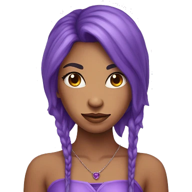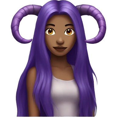 beautiful female with purple long hair hanging down with one demon horn peach skin emoji
