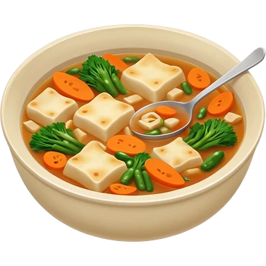 A bowl of Korean soup filled with flat, hand-torn dough pieces that look like irregular paper scraps—soft, uneven, and with natural ragged edges—floating in a light, savory broth with vegetables. emoji