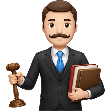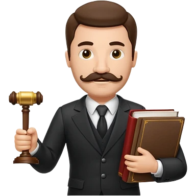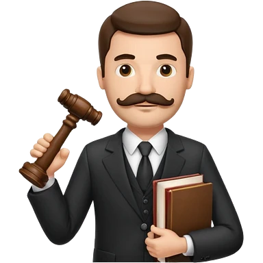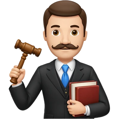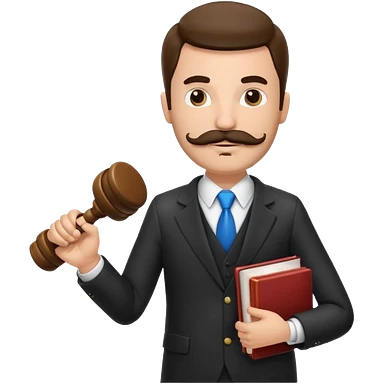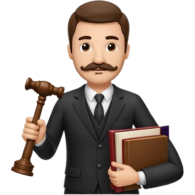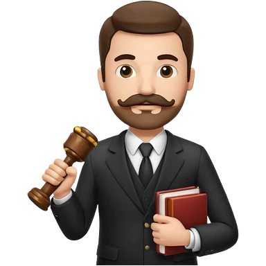 Create a male lawyer. he is wearing a fromal suit jckeret. He is holding a gavel in one hand and a book tucked under his another arm. He has a mustache and BEARD both! emoji