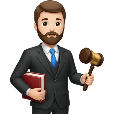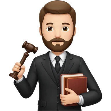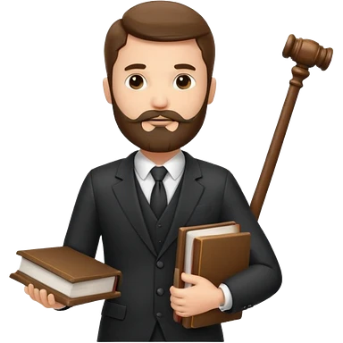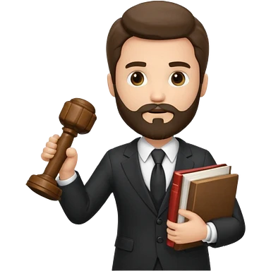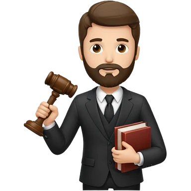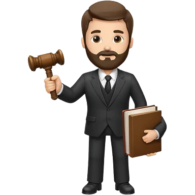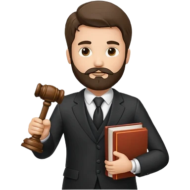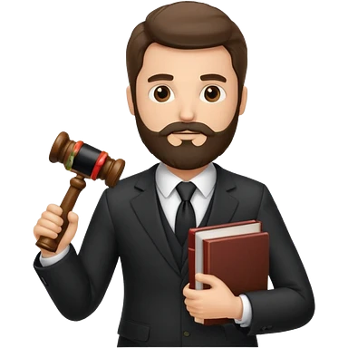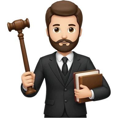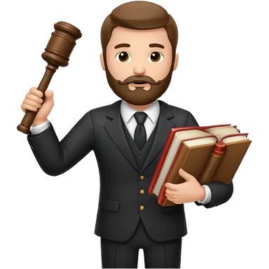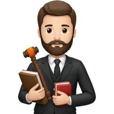 Create a male lawyer. he is wearing a fromal suit jckeret. He is holding a gavel in one hand and a book tucked under his another arm. He has beard. And the hair is kinda darker but not black. and is kinda short at the layers emoji