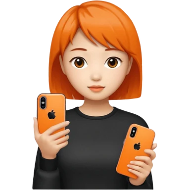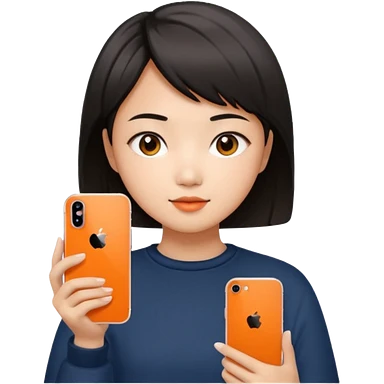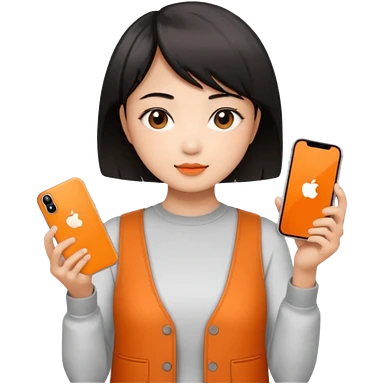 Asian girl with short hair girl holding iphone 17 pro orange emoji