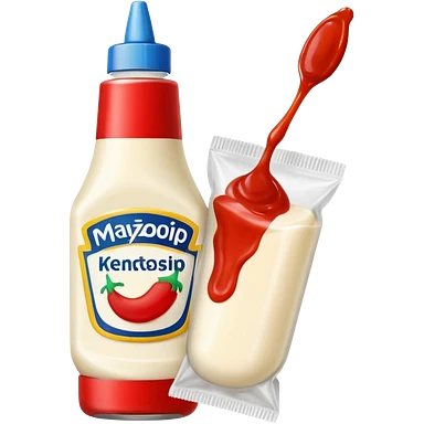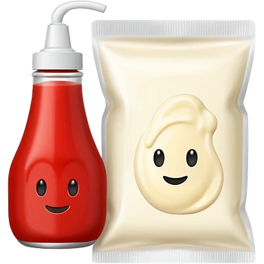 una bustina monoporzione di maionese e una ketchup da 10 ml nella stessa emoji emoji