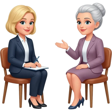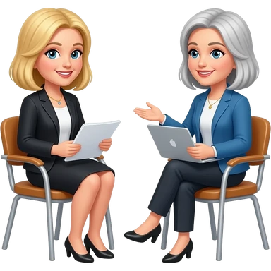 one-on-one meeting with two women, one blonde one blonde-grey updo emoji