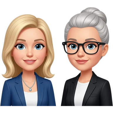 one-on-one meeting with two women, one blonde one blonde-grey emoji