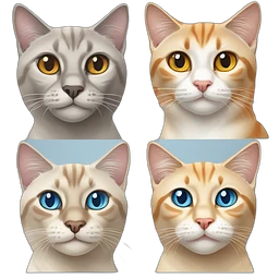 one lynx point siamese cat with one orange and white cat and one orange and orange tabby cat emoji | AI Emoji Generator