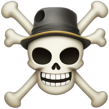 a bone-cross behind a jolly roger with a straw-hat and the ribbon of the straw hat is red emoji