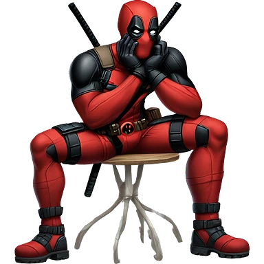 like the character Deadpool but named and drawn as Threadpool, sitting with one leg out and one hand under chin emoji