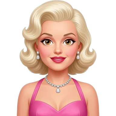 Jayne Mansfield with brown eyes, long white blonde 50s pin-up hair, pink hollywood dress, necklace and earrings emoji
