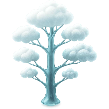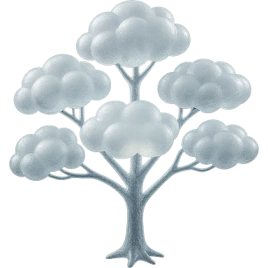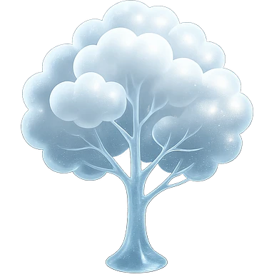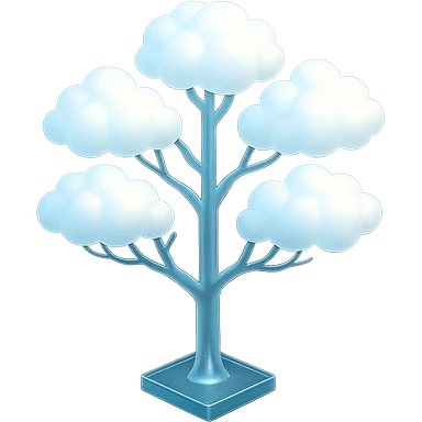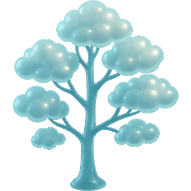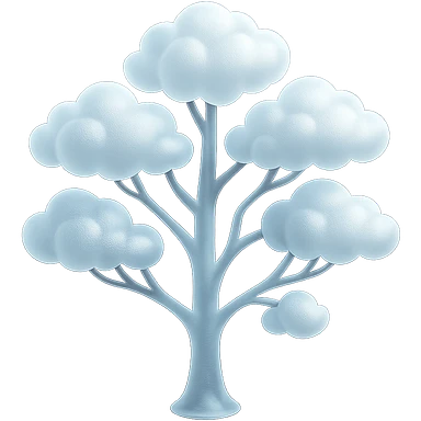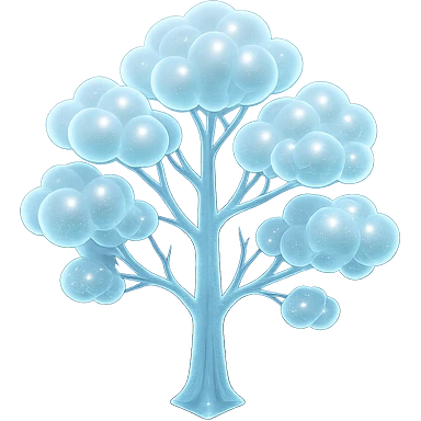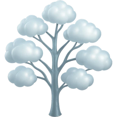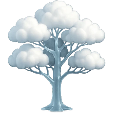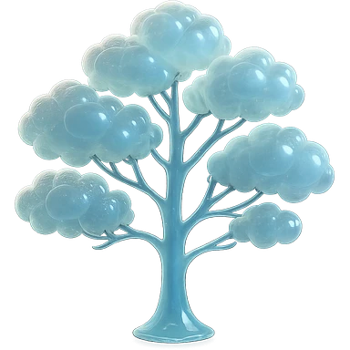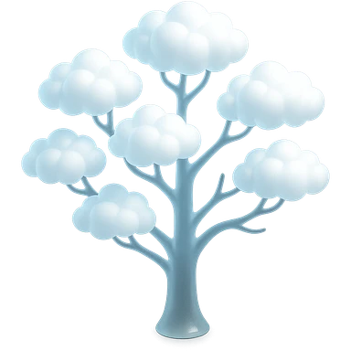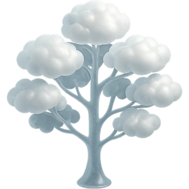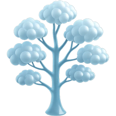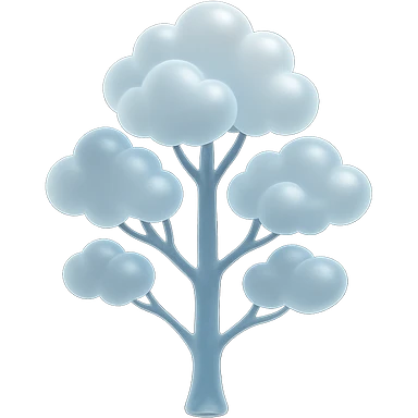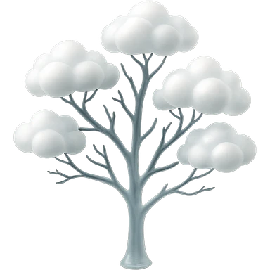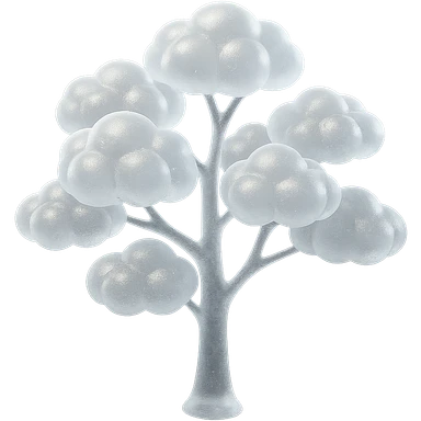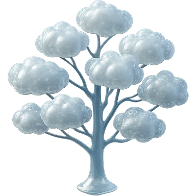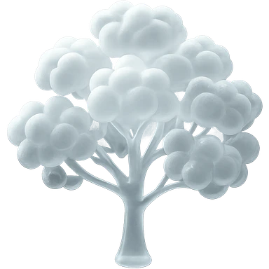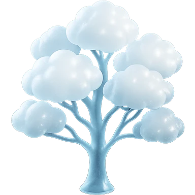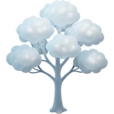 one tree with many branches, each branch covered with small, very bright white, saturated color, fluffy convex clouds, matte glass style, no background 3D illustration | AI Emoji Generator