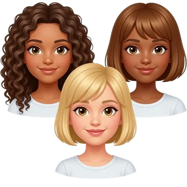 Three girls two curly brunettes one with longhair one with short, and a blonde with short straight hair. emoji