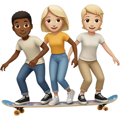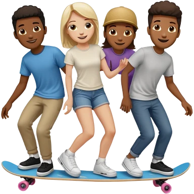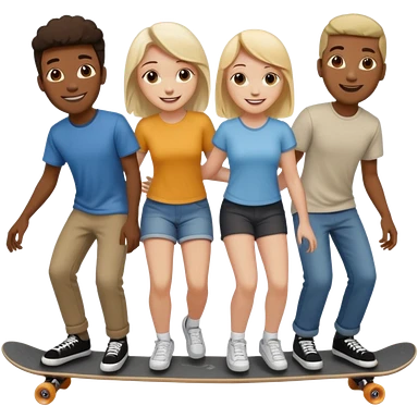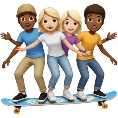 Four people (two black guys, one white guy, one white girl) on one long skateboard emoji