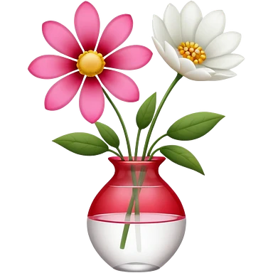 One pink flower and one white flower in transparent bouquet with red band emoji