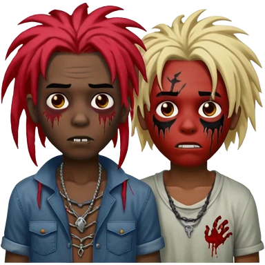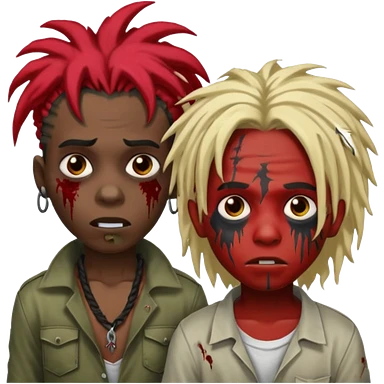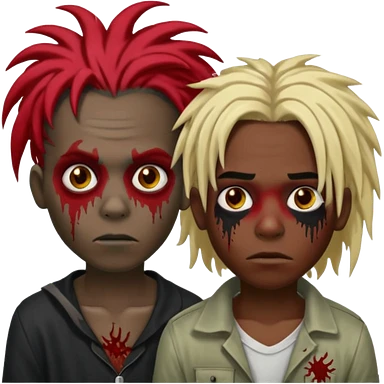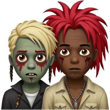 One young female green-skinned, zombie with glasses, with ombre black roots & teal tips long dreadlocks and a worried expression with a small wound near its mouth. emoji | AI Emoji Generator