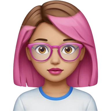 A girl with light skin, brown eyes, blue glasses, pink lips, and ONLY LIGHT BROWN hair. NO PINK!!! emoji