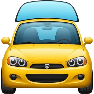 A 3D yellow mini fridge in emoji style, inspired by the sleek design of a Smeg fridge. The fridge door is slightly open, revealing a few beer cans inside. Add only two eyes on the fridge door for a mascot-like touch. Clean and minimalistic aesthetic. emoji