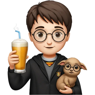 Draw Harry Potter with round glasses, messy black hair, Hogwarts robe & lightning scar on his forehead. emoji