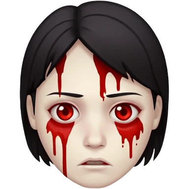 Korean murderer white skin with Asian eyes and holding kitchen knife with black straight hair with also one eye is blind covered with blood emoji