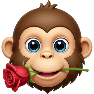 only showing the head, make this emoji “🐵” biting a rose in his mouth emoji