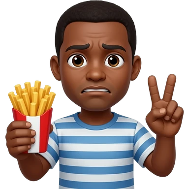 i want someone hold a 🍟 in one hand and a ✌🏽with this face 😬but make them black emoji
