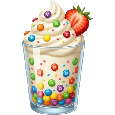 only cream with m&ms and strawberry in transparent glass emoji