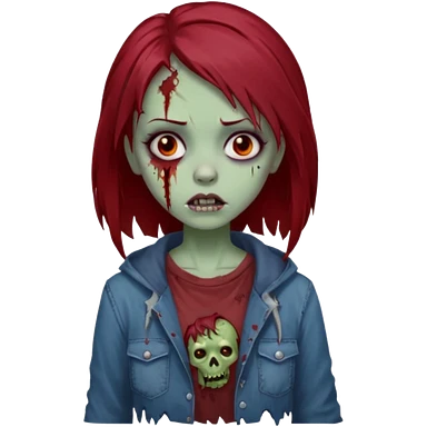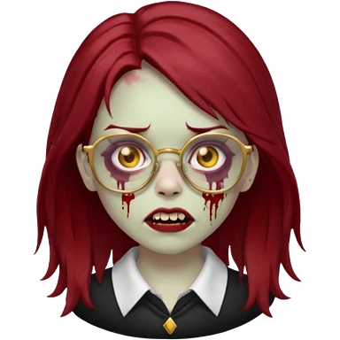 A zombie girl with dark red mid length hair with golden grills and glasses emoji